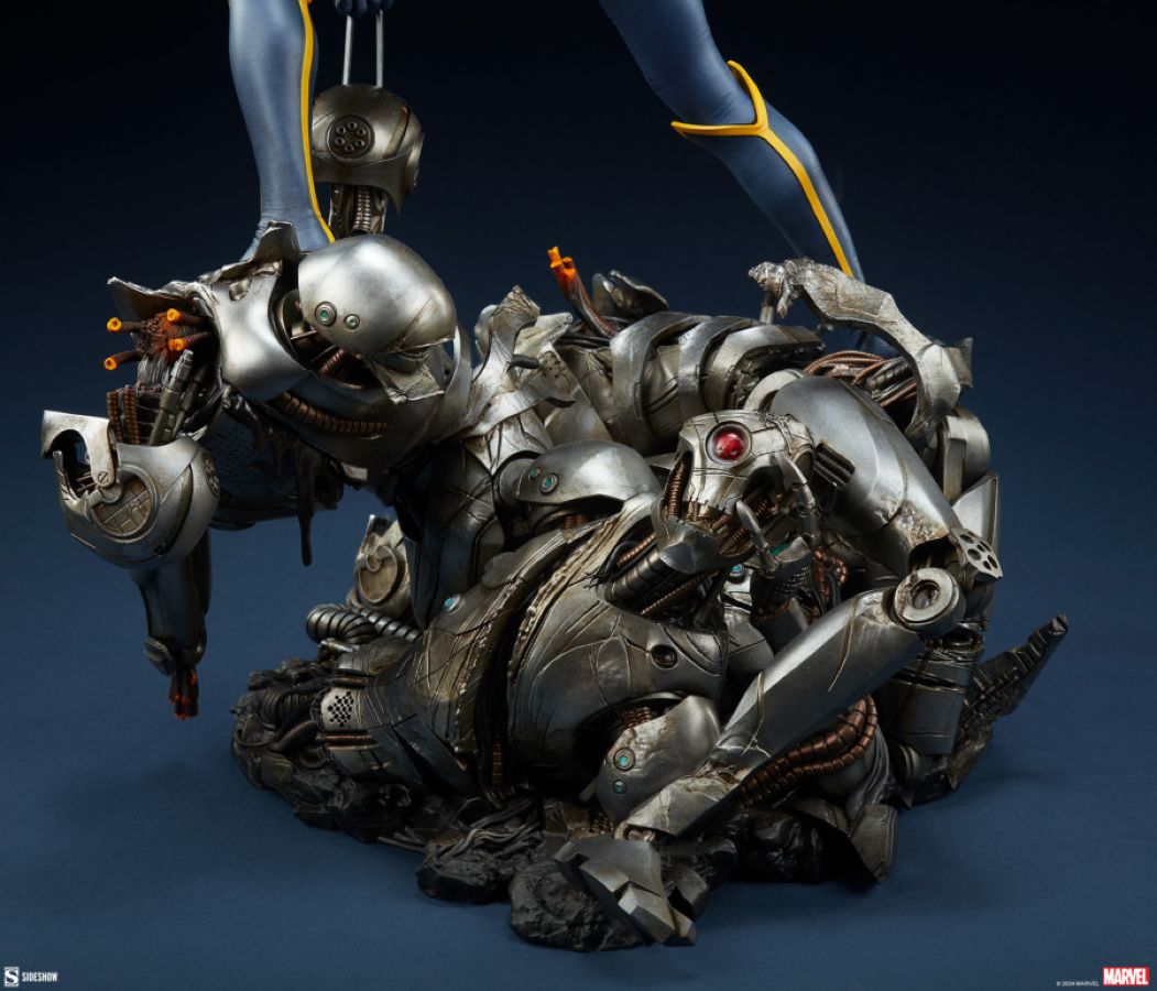 "With all I have been, I wonder...what will I be now?" Sideshow presents the Wolverine: X-23 Uncaged Premium Format Figure. This awesome Marvel collectible showcases Laura Kinney's impressive ability to overcome nearly insurmountable odds. Danger Room drones, meet Laura Kinney's fists and fury. Measuring 20.5" tall, 15" wide, and 13.3" deep, the Wolverine: X-23 Uncaged Premium Format Figure finds this legacy mutant at the end of an intense training session. Laura wears her All-New Wolverine costume while balancing on a metallic mountain of defeated adversaries. She looks ahead with well-earned confidence as her Adamantium claws plunge into a robot's severed head, dealing the final blow. Simulation complete! Inspired by the character's appearance in Marvel Comics, this fully sculpted X-Men collectible brings the battle right to your doorstep. Every detail, from the blue and yellow super suit and masked portrait to the mass of mangled machinery on the base, presents Laura Kinney at her most powerful. View all