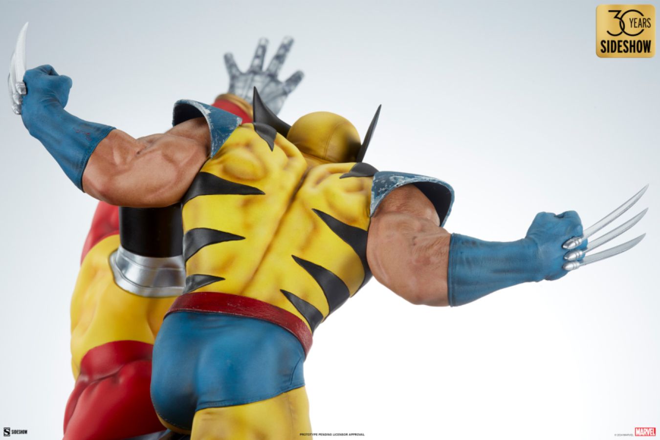 "First rule about the Fastball Special...you don't talk about the Fastball Special." Sideshow presents the Fastball Special: Colossus and Wolverine Statue, a dynamic Marvel collectible inspired by this incredible duo's iconic battle move. The Fastball Special: Colossus and Wolverine Statue measures 18" tall, 14.93" wide, and 19.12" deep as a colorful team-up bursts off the comic page and onto your shelf amid a fiery explosion. The excitement begins on the left, with backdrop panels depicting Wolverine and Colossus in their fight against a Sentinel. In the center, our two heroes emerge from the comic book page itself in three-dimensional glory, with the silver Colossus braced to launch a snarling Wolverine. The famous "fastball special" concludes on the right in vibrant panel art as well as on the base with a severed, flaming Sentinel faceplate. This action-packed, fully sculpted X-Men collectible features custom original art in the style of classic X-Men comics. The astonishing artwork itself is printed on every angle of the backdrop's exterior, including a front and back cover spread with dialogue bubbles, yellowing on the page edges, and a halftone texture, which recreates that beloved retro look. Additionally, collectors can rearrange the statue with alternate swap-out pieces that allow Colossus and Wolverine to stand separately from the book backdrop as complete figures. View all