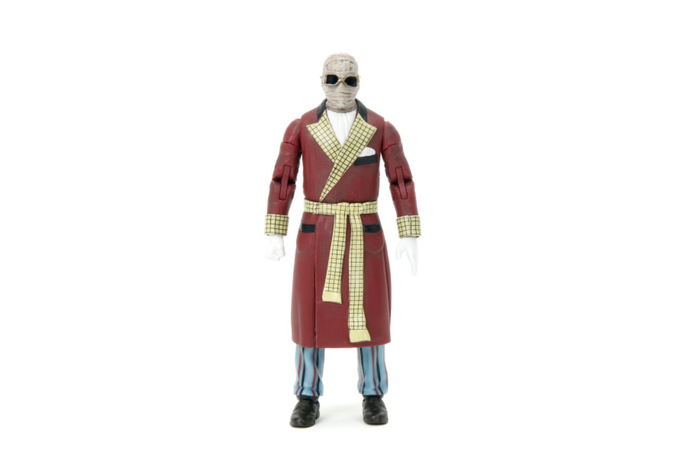 Even the moon was frightened by him. Inspired by the 1933 classic, the Invisible Man is here... and collectible. Complete with robe, scarf, gloves, and sunglasses, the mysterious chemist makes his debut as part of the Jada Toys Universal Monsters figures collection. This authentically licensed 6 action figure features highly detailed sculpting and premium painted details. His fully articulated form comes with an alternate head (in peeling bandages) and multiple accessories. Also available Frankenstein, Dracula, Bride of Frankenstein, Creature from the Black Lagoon, and the Wolfman.