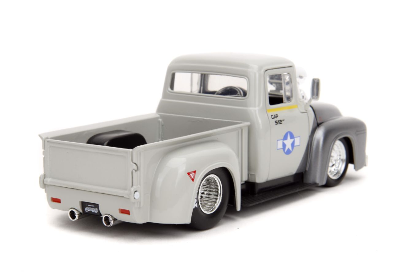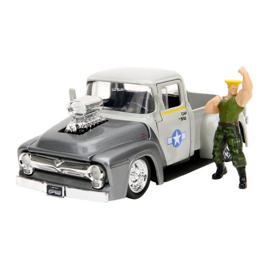 Get ready to bring the world of Street Fighter into your collection with this 1:24 Hollywood Rides 1956 F-100 Ford Pickup w/ die-cast Guile figure! Featuring intricate details and high-quality materials, this figure perfectly captures the character's iconic appearance, including his signature military blowout hairstyle.