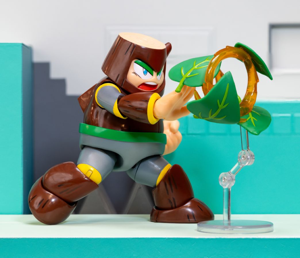 Mega Man Wood Man figure, CAPCOM collectibles, 1:12 scale action figure, articulated Wood Man toy, deluxe Mega Man figures, Robot Master collectible, effect accessory, Leaf Shield figure, premium collector packaging, retro gaming nostalgia, Mega Man Wave 3 toy, bark-covered Robot Master, CAPCOM video game memorabilia, nature-themed action figure.