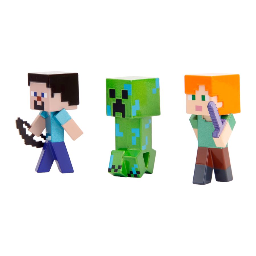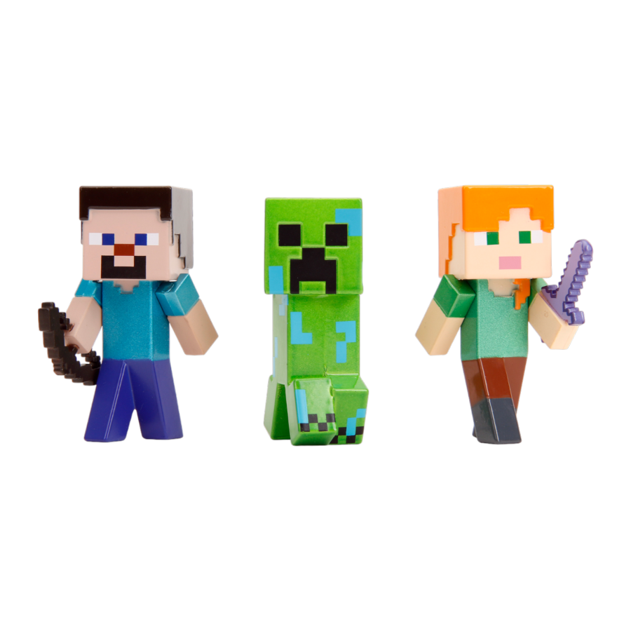 The Minecraft 2.5" Metalfigs 3 Pack is a collection of highly detailed, collectible Metalfigs that feature some of the most iconic characters from the popular video game, Minecraft.