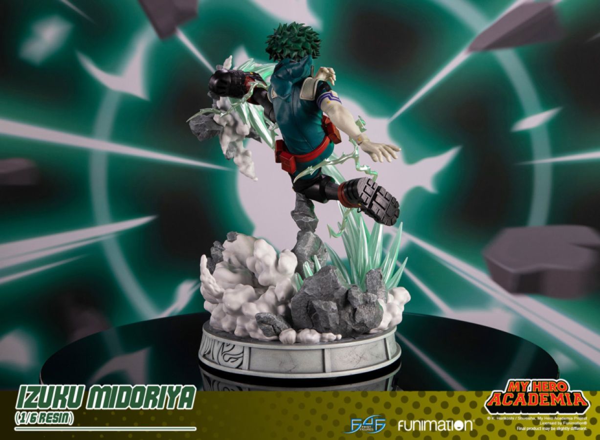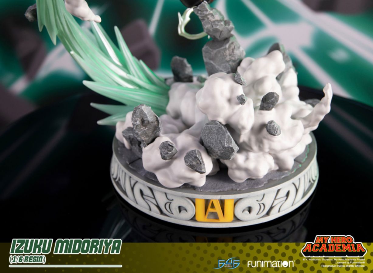 First 4 Figures is proud to introduce their latest statue collectible, Izuku Midoriya! This is the first statue to release in the all-new My Hero Academia lineup. The statue's concept is inspired by the scene in the anime where Izuku Midoriya saves All Might from a falling rock wall during Class 1-A ’s training to develop their ultimate moves. It was a pivotal moment in Midoriya ’s quest to becoming a hero because that was when he realized that he doesn't need to emulate everything that All Might did despite inheriting One For All from him. All Might was a puncher, and Midoriya thought that he had to be one too even if his arms were severely damaged from all the training and battles he's been through. Izuku Midoriya has finally stepped out of All Might ’s shadow and has made the Quirk his own by developing "One For All: Full Cowl – Shoot Style", his ultimate move that strengthens his kicks by utilizing the power of One For All! The electricity effects enveloping Izuku Midoriya glow in the dark, breathing even more life and emphasis to the power of One For All! The sides of the base are influenced by the U.A. High School campus. The design itself is the marble detailing you see above the three doors by the campus entrance, and in the middle is the school's logo. Izuku Midoriya Standard Edition (1/6 Resin) comes with the following: My Hero Academia - Izuku Midoriya resin painted statue Highly detailed base inspired by the My Hero Academia art style Glow in the dark One For All electricity effects Limited edition numbering & Authentication Card View all