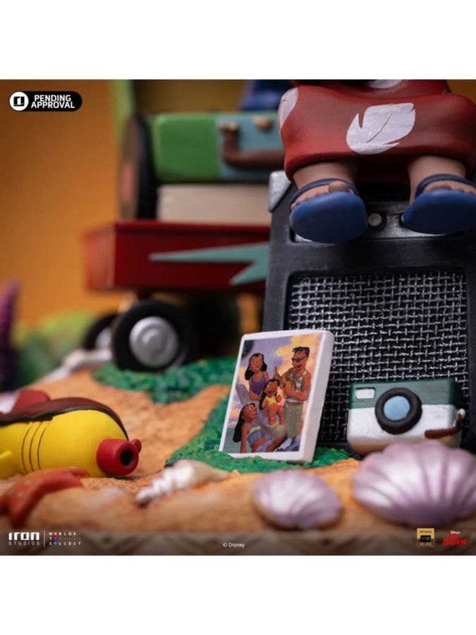 With the base adorned with waves around it, Iron Studios proudly presents the statue "Lilo & Stitch Deluxe - Disney Classics - Art Scale 1/10", with four optional versions of Stitch: normal, as Elvis, as a superhero, or dancing the Hula, expanding its commemorative collection of Disney's 100 years.