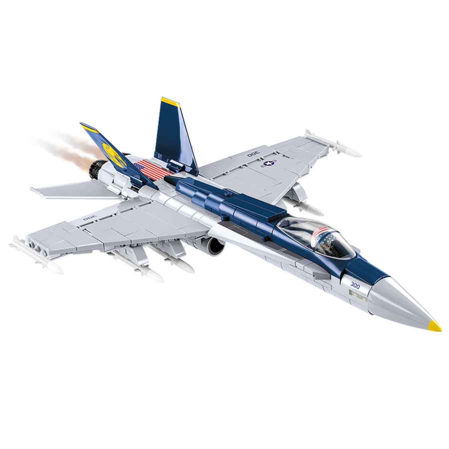 The F/A-18C Hornet is a unique model of a multi-role fighter in the colors of the famous US Navy fighter squadron. The set was prepared in a 1:48 scale model with the use of 538 COBI construction blocks. The set includes high-quality prints imitating the painting of the original aircraft. The model is equipped with a folding undercarriage and rotating wheels. There are high-quality prints on the blocks. There are no stickers here! Under the wings is a large arsenal of weapons. You can place a special pilot figure in the cabin. The set also includes a block display stand and a plate with the name of the aircraft. This exclusive, licensed set is aimed at everyone, regardless of age, including aviation and military fans. The plane also looks equally attractive in an office or in a teenager's room.