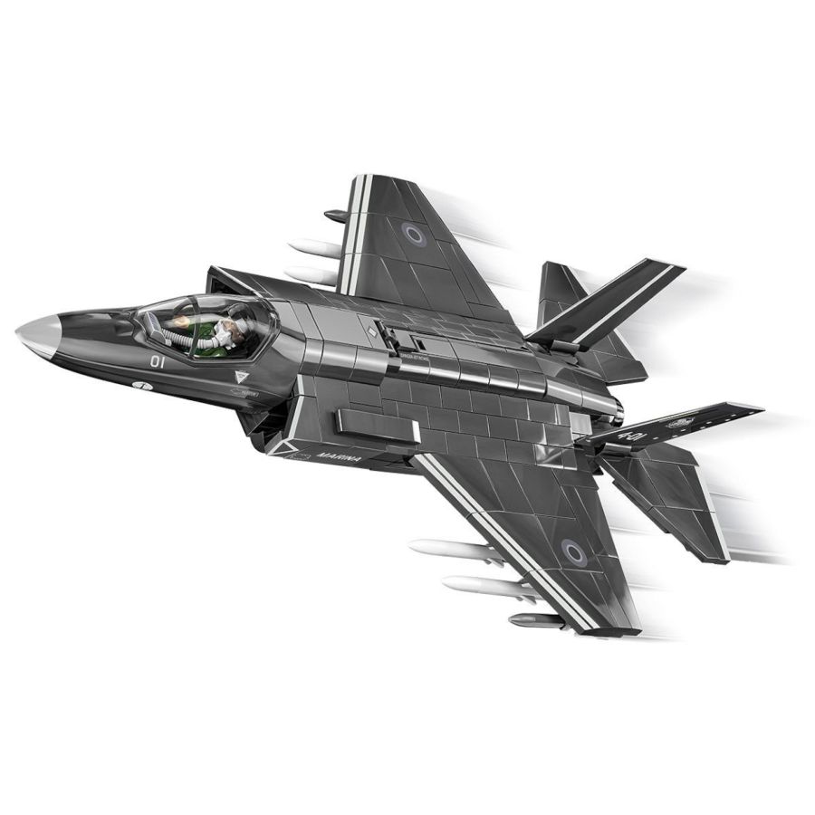 With 610 top-quality COBI construction blocks you can build the world's most advanced multi-role fighter, the F-35B LIGHTNING II, released under the license of the Lockheed Martin arms mega-concern. The set has been carefully designed in a modeling scale of 1:48. The blocks designed specifically for this set have been covered with high-quality prints. The characteristic pilot's cabin is made in a very realistic way and can be opened to accommodate a pilot figure equipped with a helmet and an oxygen mask with a hose. When you purchase the plane you can also build a block display stand with a plate containing the name of the set!