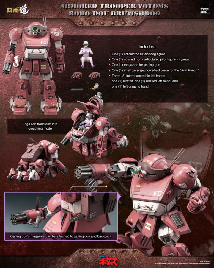 The third ROBO-DOU item based on the classic anime franchise "Armored Trooper VOTOMS" is Brutishdog, a customized version of Scopedog especially made for the Perfect Soldiers by the Secret Society!