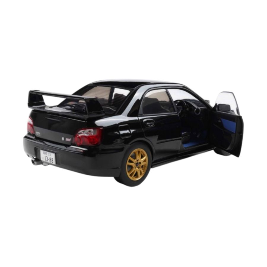 This finely detailed 1:18 scale model celebrates one of the most iconic performance cars of its era. Finished in striking Java Black Pearl with authentic proportion and design cues, it showcases the WRX STIs aggressive stance and performance heritage with precision craftsmanship.