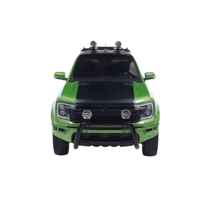 This rugged 1:18 scale model faithfully captures the bold design and off-road attitude of the 2024 Ford Ranger Raptor in a striking green finish. With detailed features and precision craftsmanship, every curve and contour reflects real-world toughness and performance.