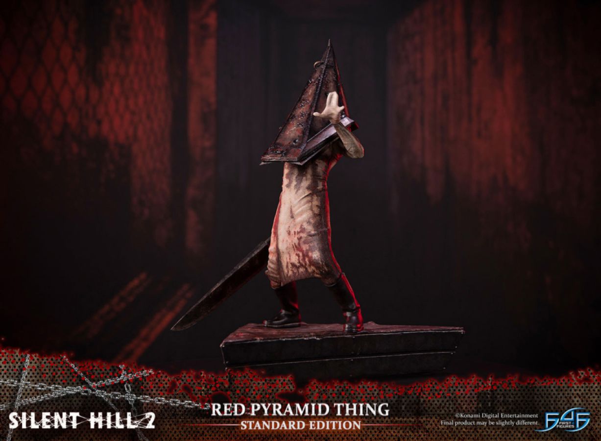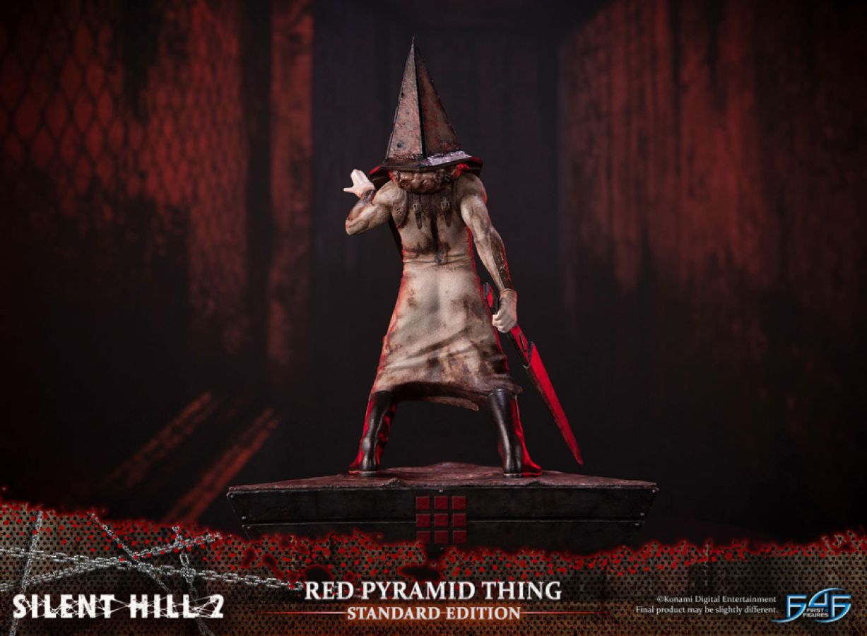 This product is expected to ship: Oct 2022 - Dec 2022 First 4 Figures is proud to introduce their latest resin collectible, Red Pyramid Thing. This is the first statue to release in the all-new Silent Hill lineup. The base is inspired by the carpet in the boss room in Lakeview Hotel where James Sunderland has his final encounter with a Red Pyramid Thing and faces two of these. On the back of the base are nine red squares, which is the clickable save point you find just before entering the boss room. View all