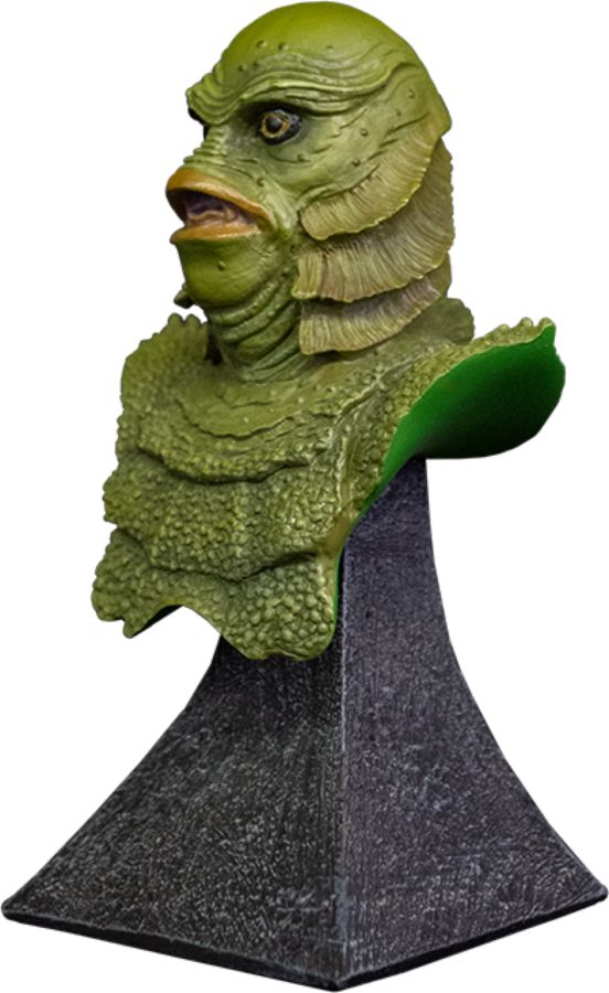Trick or Treat Studios and Universal Studios are proud to present the officially licensed Creature From The Black Lagoon Mini Bust. Sculpted by Alex Rey, every detail of The Creature is represented in this highly detailed bust. This amazing bust is made in resin and is meticulously painted to perfection. In addition, the bust is attached to a bust stand so that you can display it in your home, office or anywhere your monstrous heart desires. And to top it all off, tall our Mini Bust come in a beautiful Collectors Window Box. View all