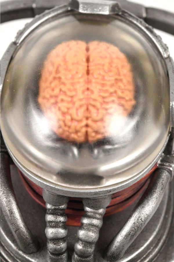 - Clear resin for the brain dome (Slightly hazed to resemble biomedical gel Tarnished steel cylinder chasis)