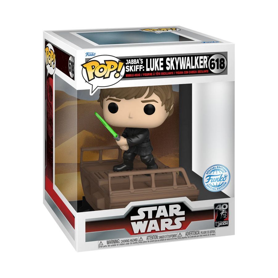 collection by displaying this exclusive Jabba ’s Skiff Pop! Luke Skywalker with the rest of the Jabba ’s Skiff set in your home. Vinyl bobblehead is approximately 5.6-inches tall. View all