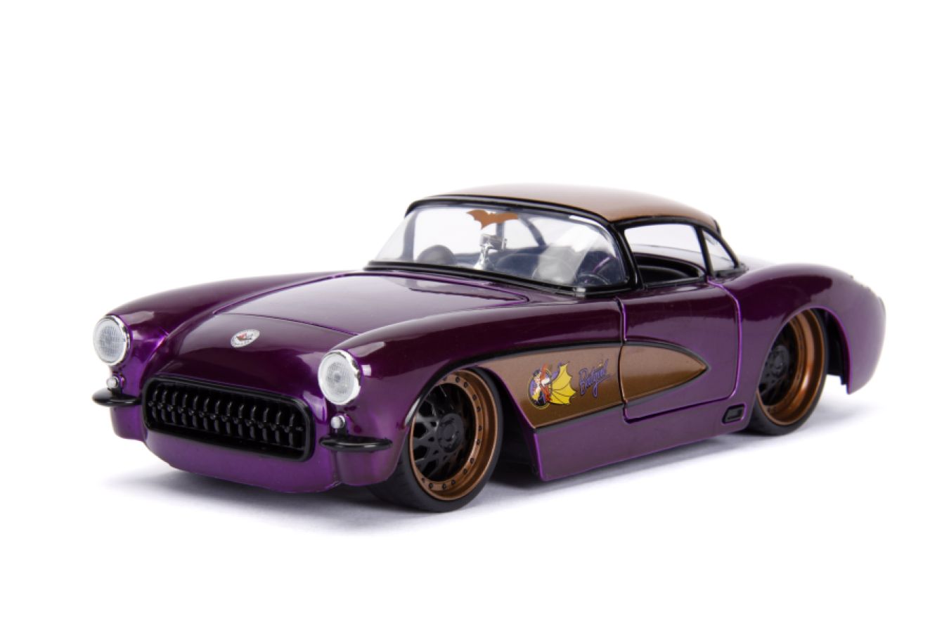 Go back in time with our most popular super-heroines in 1940s-era pinup style along with their sweet classic rides in our DC Bombshells collection. Featuring a die-cast body and rubber tires, this 1:24 scale 1957 Chevy Corvette is a must have in any collection! Included is a 2.75 Batgirl Bombshell die-cast collectible figure. Collect them all today.