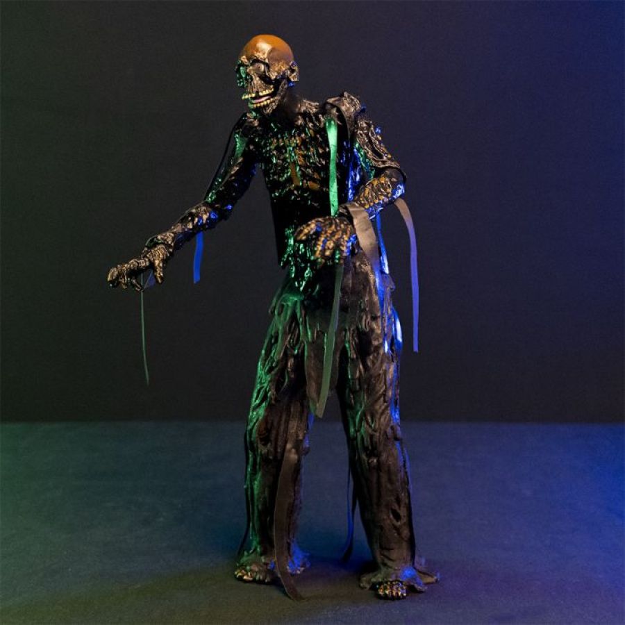 This amazing figure was sculpted from the ground up by Alex Ray and Justin Mabry to give the most movie-accurate look possible. The figure features different materials and finishes to really capture that perfect gooey fresh from the barrel zombie look.