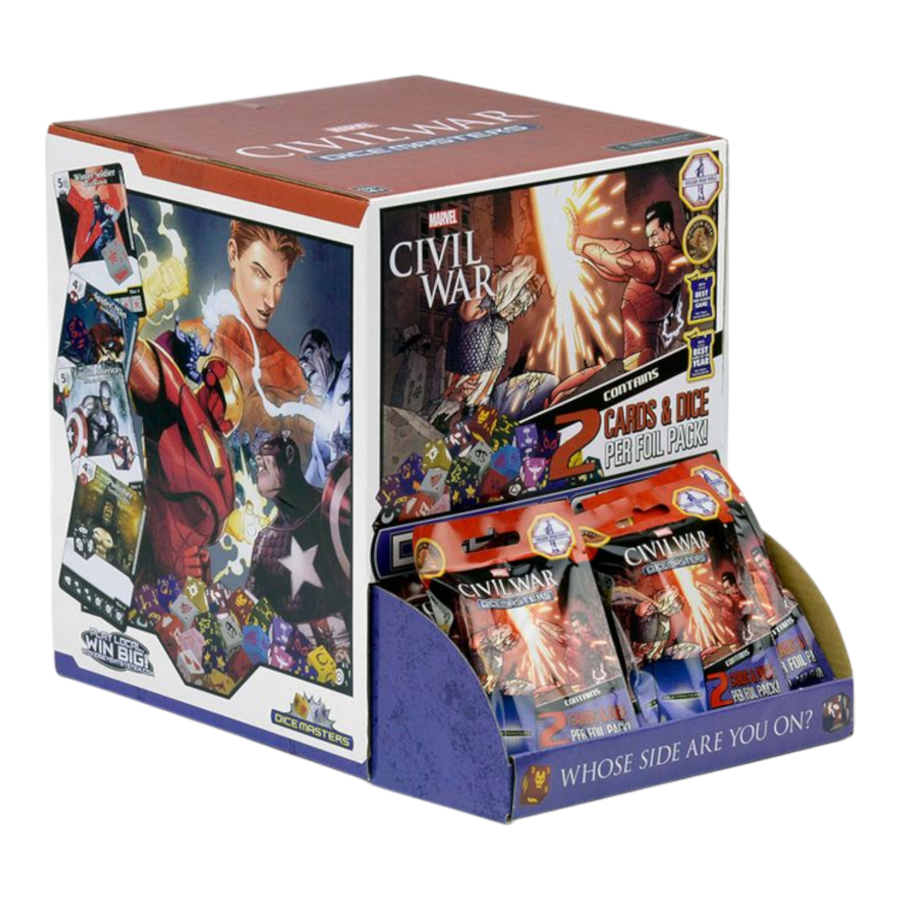 products. Dice Masters is a global hit from WizKids. It uses the same proprietary Dice Building Game platform developed by Michael Elliott and Eric M. Lang. Marvel Dice Masters: Civil War takes epic dice battles to new heights! Marvel Dice Masters: Civil War Gravity Feed features fan favorite characters like Spider-Man, Captain America, Iron Man, Wasp, Loki, Rocket Raccoon, Taskmaster, and more! Marvel Dice Masters: Civil War has brand new mechanics for Enlistment and Resistance. When building your team, you ’ll ask yourself "Which side are you on?" Each Marvel Dice Masters: Civil War Foil Pack contains two cards and two dice that players can add to their Dice Masters collections! Introducing more than 30 heroes and villains (and their dice!), Marvel Dice Masters: Civil War will be sure to stick out as a highlight of your Dice Masters collections