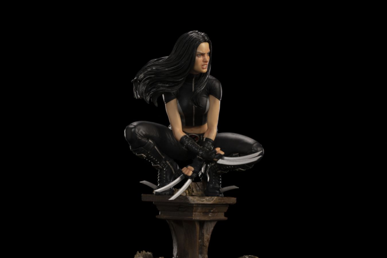 With her razor-sharp claws, fists, and feet unsheathed, the young mutant heroine poses on the rubble of demolished Mansion X, leaning on the remains of a wooden pillar, with an urn containing an ancestor's ashes lying at her feet. She prepares to jump in and unleash all her fury against the invading forces at her home led by Magneto, the villain-controlled Sentinel Robots, and their followers, and defend her adoptive family, the X-Men, and their allied group X-Force. Expanding the largest collection of Marvel mutant heroes statues ever produced, Iron Studios introduces "X-23 - X-Men - BDS Art Scale 1/10" featuring the lethal Wolverine heiress. In a top-secret program, geneticist Dr. Sarah Kinney produced a female embryo using her own genetic material combined with material from the Canadian mutant Logan, thereby generating her daughter Laura Kinney, a clone of the wild mutant Wolverine. Raised in captivity, she was codenamed X-23 and was trained to be a killing machine, and even with outbursts of extreme rage and violence similar to her father's, with the support of Logan and the other X-Men, Laura overcame her traumas and asserted her identity as the daughter of Logan and Sarah. Like Logan, X-23 has accelerated regenerative healing factor, longevity, and superhuman senses, but unlike her father, she has two retractable adamantium-coated bone claws on each arm and one on each foot. Created by writer Craig Kyle for the animation X-Men: Evolution in 2003, X-23 made her first appearance in the 41st episode of the series and was later featured in the comics on the adult-themed series NYX with a script by Joe Quesada and artwork by Joshua Middleton, and later the legendary Chris Claremont introduced her to the X-Men. In theaters, in the movie Logan, she was played in 2017 by Dafne Keen, in the 10th production of the X-Men film franchise. Already available for Pre-Order, the X-23 statue can both add to the X-Men Vs. Magneto, Sentinels, and mutant villains combat diorama scenarios, as well as compose others, in the X-Force formation or according to the preference of each collector. Scale: 1/10 Features: - Limited edition - Based on original references - Made in polystone - *(may contain parts in resin, polystone, PVC, metal and fabric) - Hand painted Product dimensions: 7.8 in (H) x 4.3 in (W) x 4.7 in (D) View all
