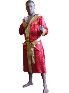 Designed by Trick or Treat Studios Trick or Treat Studios is proud to present the Officially Licensed Rocky Balboa Robe from the Academy Award winner for Best Picture, Rocky. This robe is an exact replica of the one worn by Rocky in his first fight with Apollo Creed. Every detail of Rocky's robe is here; it even includes the Shamrock Meats patch on the back, which Rocky put on the robe as favor to Paulie. Made from a soft satin / polyester blend, this robe is not only comfortable, but also the perfect fit. One size fits most. So celebrate the 40th Anniversary of Rocky this Halloween by becoming the Italian Stallion! View all