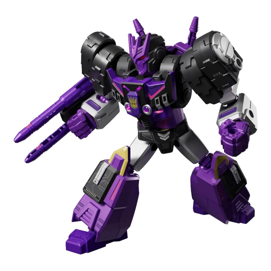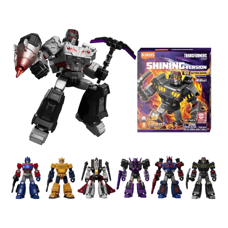 Experience a darker Cybertron with Transformers Shining Version 03, featuring IDW's most iconic character transformations. From Megatron's early days as a miner to his rise as a legendary gladiator, each figure tells a unique story. The collection showcases stunning UV-activated glowing features, premium metallic finishes, and detailed accessories that bring these parallel universe characters to life.