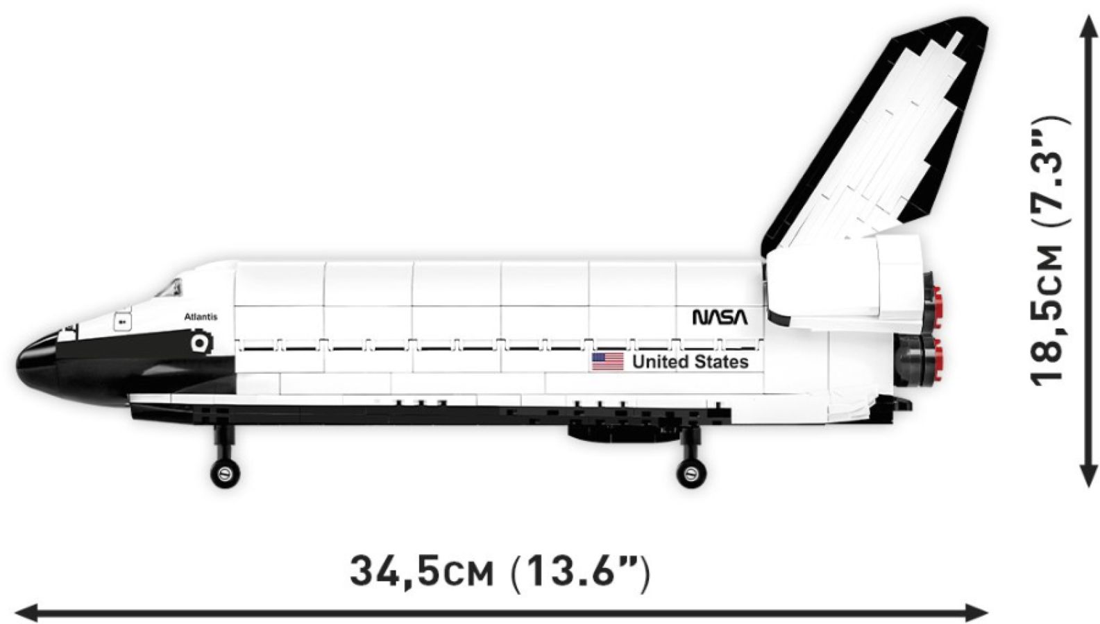 The space shuttle Atlantis is one of mankind's greatest creations and has made a lasting mark on the history of space exploration. The block model perfectly complements the COBI Historical Collection. The carefully designed set includes a model of the Atlantis prepared in a scale of 1:100. The Atlantis features a very accurate reproduction, high-quality prints, movable elements, access to the interior, a figure of an astronaut and a mini-model of the Hubble telescope, combining collector's and educational value.