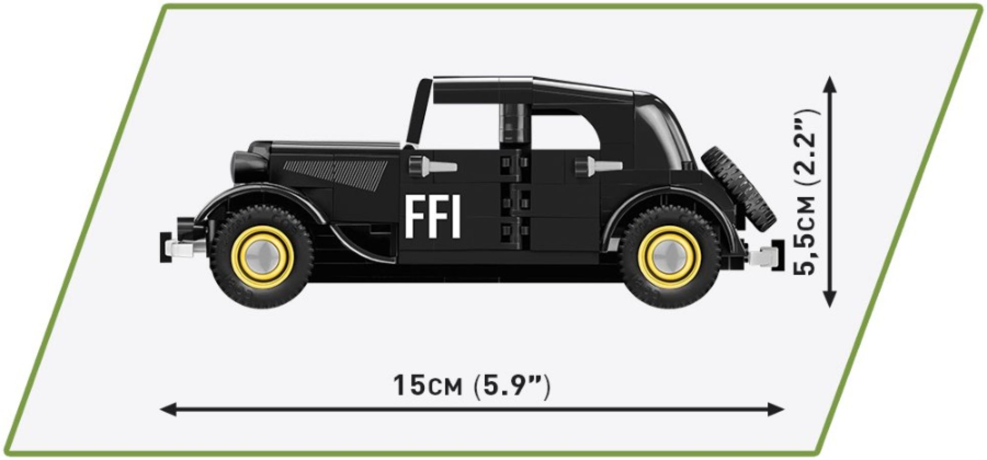 Released under the license of the automotive giant from France, the Citroen Traction 11CV BL car is a piece of history that you can build piece by piece! The original car was produced from 1937 to 1957. It was distinguished by a self-supporting body and front-wheel drive. The widely accepted and unofficial name of the car is Traction Avant, which means "front-wheel drive" in French. Our model is equipped with historical emblems of the French Internal Forces (fr. Forces françaises de l'Intérieur). The FFI was a unified organization uniting all parties of the French Resistance during World War II! The set includes a figure of a French Resistance soldier and a plate with the name of the vehicle.