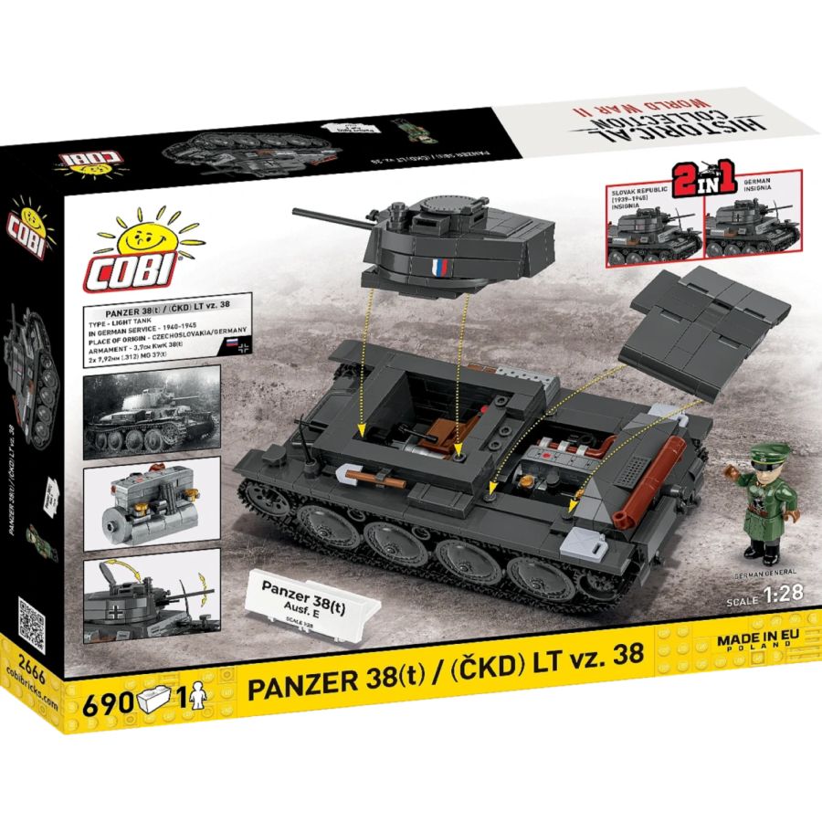 Discover an extraordinary 2-in-1 set from COBI that lets you build two historical versions of the tank: the LT vz. 38 with Slovak markings and its German variant, the Panzerkampfwagen 38(t)!