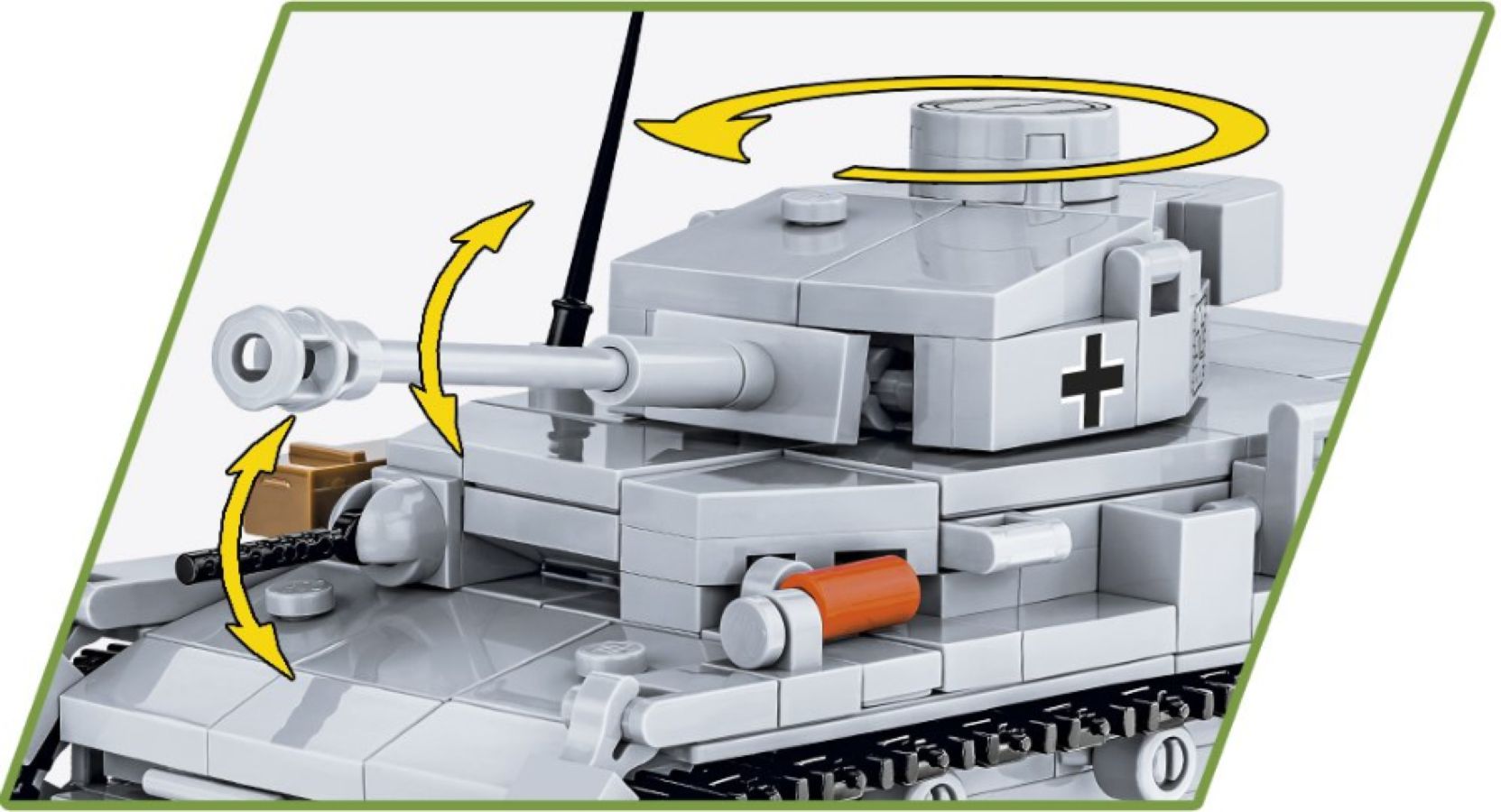 The COBI block-based Panzer IV has been reproduced with attention to detail in a 1:48 scale model. It has movable elements like the turret and gun barrel, as well as rotating wheels and tracks. The advantage of the set consisting of 390 elements is a solid structure that faithfully reflects the original shapes of its historical inspiration. Our miniature tank has been covered with high-quality prints that do not rub off. The Panzer IV completes our series of miniature tanks made in 1:48 scale, which will fit into any collection of a fan of military history and technology built of Polish COBI building blocks.