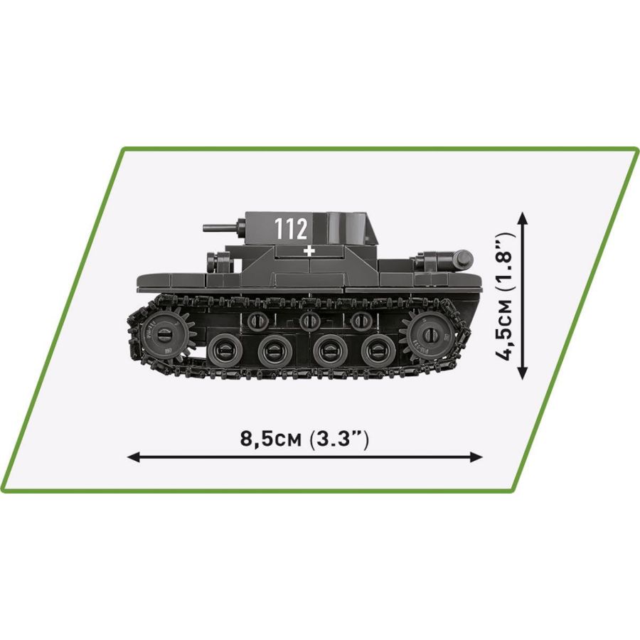 Panzer I tank dimensions (L x H): 8.5 cm (3.3") x 4.5 cm (1.8")