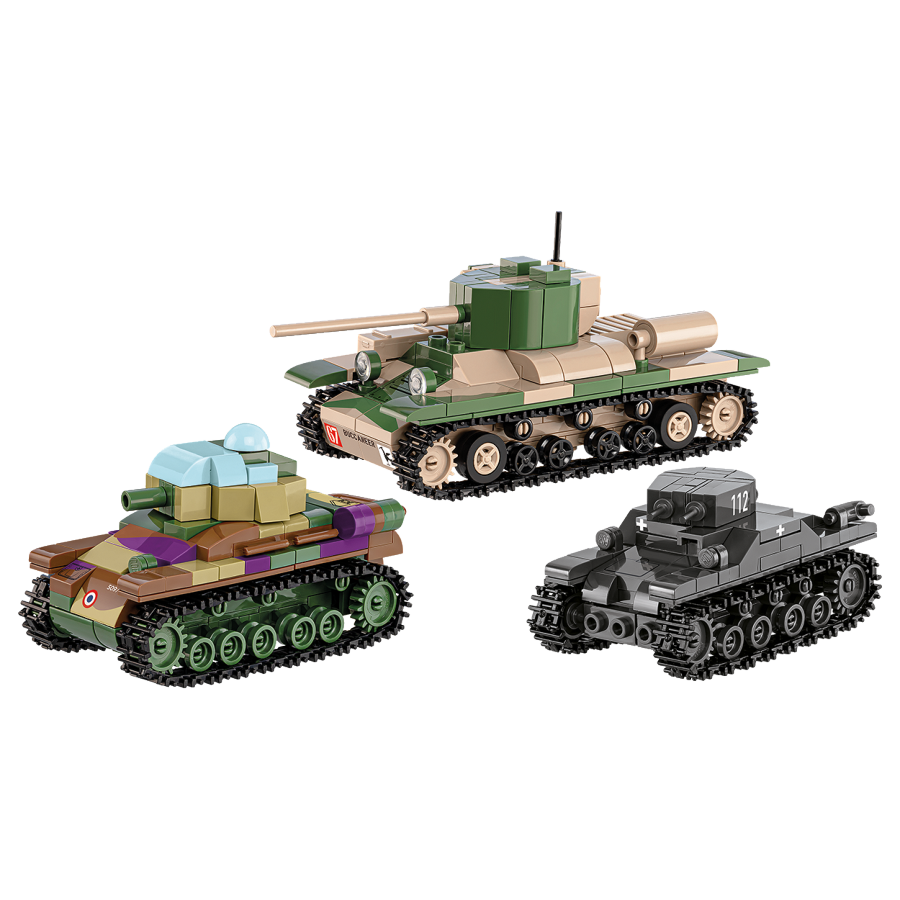 A representation of three historic tanks from the Second World War, which were selected from the distinguished exhibition of the largest armor museums in Europe! With one set of COBI blocks you can build: