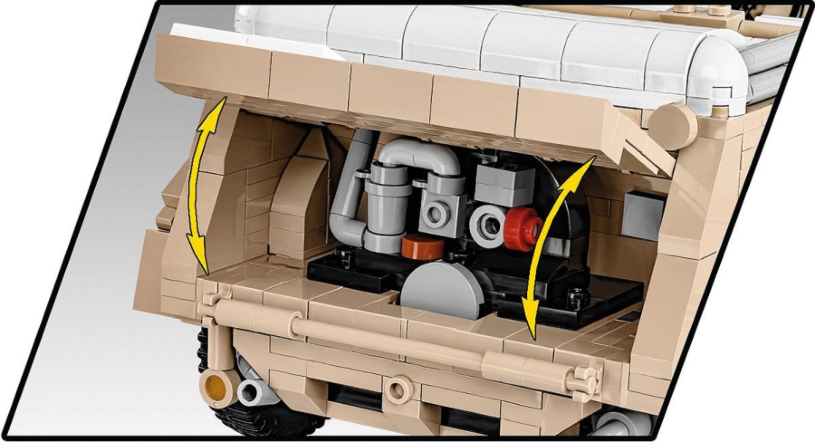 The exterior also raises the bar in terms of the accuracy of proportions and detail that only a set of this size can deliver. This includes an exclusive window, opening doors, access to the trunk and engine compartment, equipment elements and turning wheels that can be moved with the steering wheel.