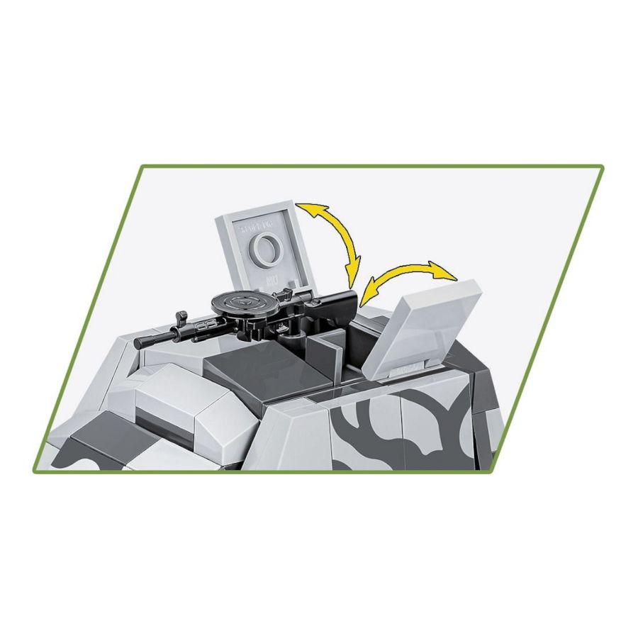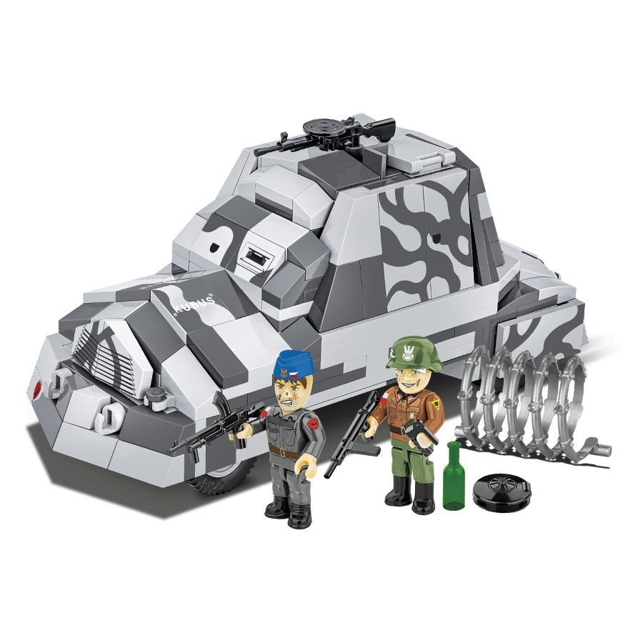 The 1:35 scale block model contains prints and all the most important features of its inspiration, which is located in the Polish Army Museum in Warsaw. COBI didn't even forget about such a little-known detail as the Otter Motor Column emblem on the bumper! Our model is equipped with a DP-28 machine gun. The top hatch can be opened to place a figure inside. Not everyone knows that Kubus was entered through a hole in the floor! COBI recreated this unusual entrance in the model!