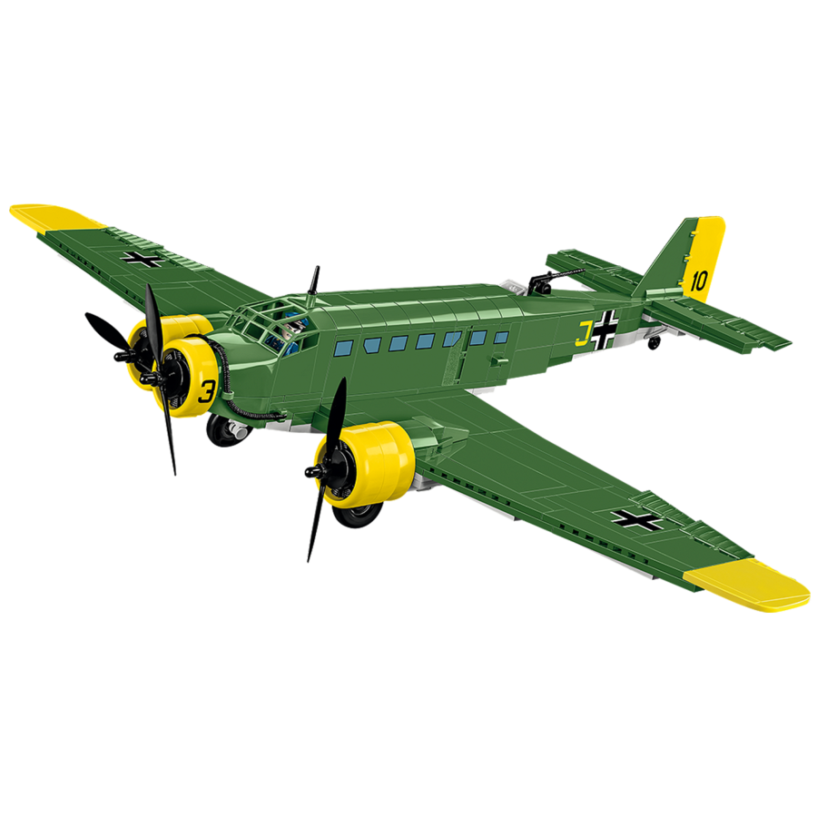 The Junkers JU 52 is the most recognizable three-engine German plane from World War II. Designed to carry passengers and cargo, it has been perfectly suited for military aviation. In the initial phase of the war it was also used as a so-called auxiliary bomber. After modifications it towed gliders of landing troops. JU 52 planes transported numerous landing units on all war fronts. The most famous operations in which JU 52 took part were: the attack on Greece, "Operation Merkur", i.e. landing in Crete and help for the 6th army of Field Marshal Paulus, cut off at Stalingrad. After World War II JU 52 was still produced in France under the name AAC. 1 Toucan and in Spain as CASA C.352-L. Individual units can be found in operation today! The block model has many movable components such as rotating wheels with rubber tyres, movable propellers and ailerons. Openable doors to the transport compartment and the cabin allow the pilot and German parachutist to be placed inside. The block model was produced in the painting used by the Luftwaffe during the landing in Crete. For added detail we use printed blocks rather than stickers. This not only adds more detail into the model but also gives more durability during play. It is a great toy for all the youngest aviation enthusiasts. Thanks to the faithfully reproduced proportions and details of the aircraft, the model will be a perfect decoration for every collection of young and adult history and aviation enthusiasts. - 548 high quality elements. - Two figures depicting a pilot and a German parachutist. - 100% prints, no stickers. - Clear and intuitive instruction based on drawings and icons. - Fully compatible with other brands of building blocks. View all