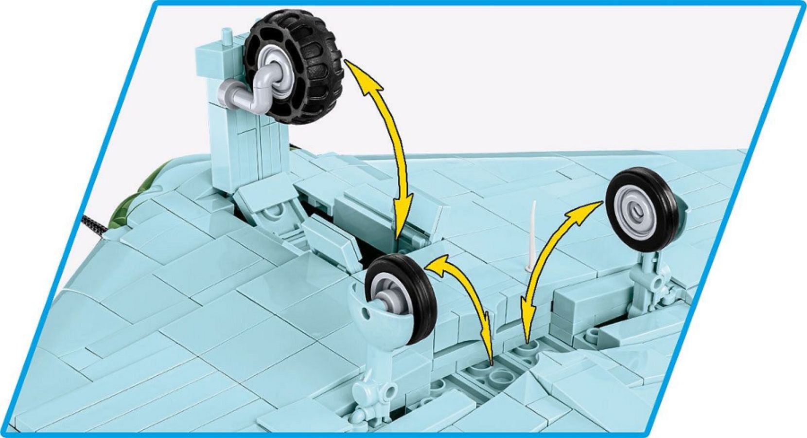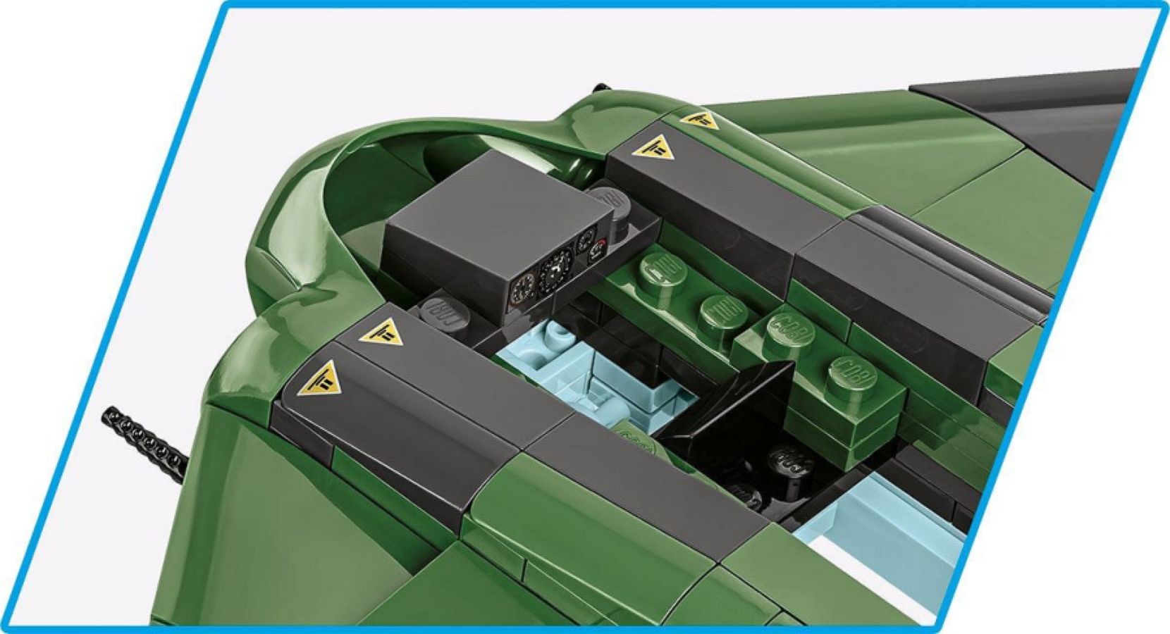 Especially for this set we have designed new blocks that perfectly imitate the characteristic nose of the plane along with the pilot's cabin and engine air intakes. The model has access to a cockpit containing detailed prints.