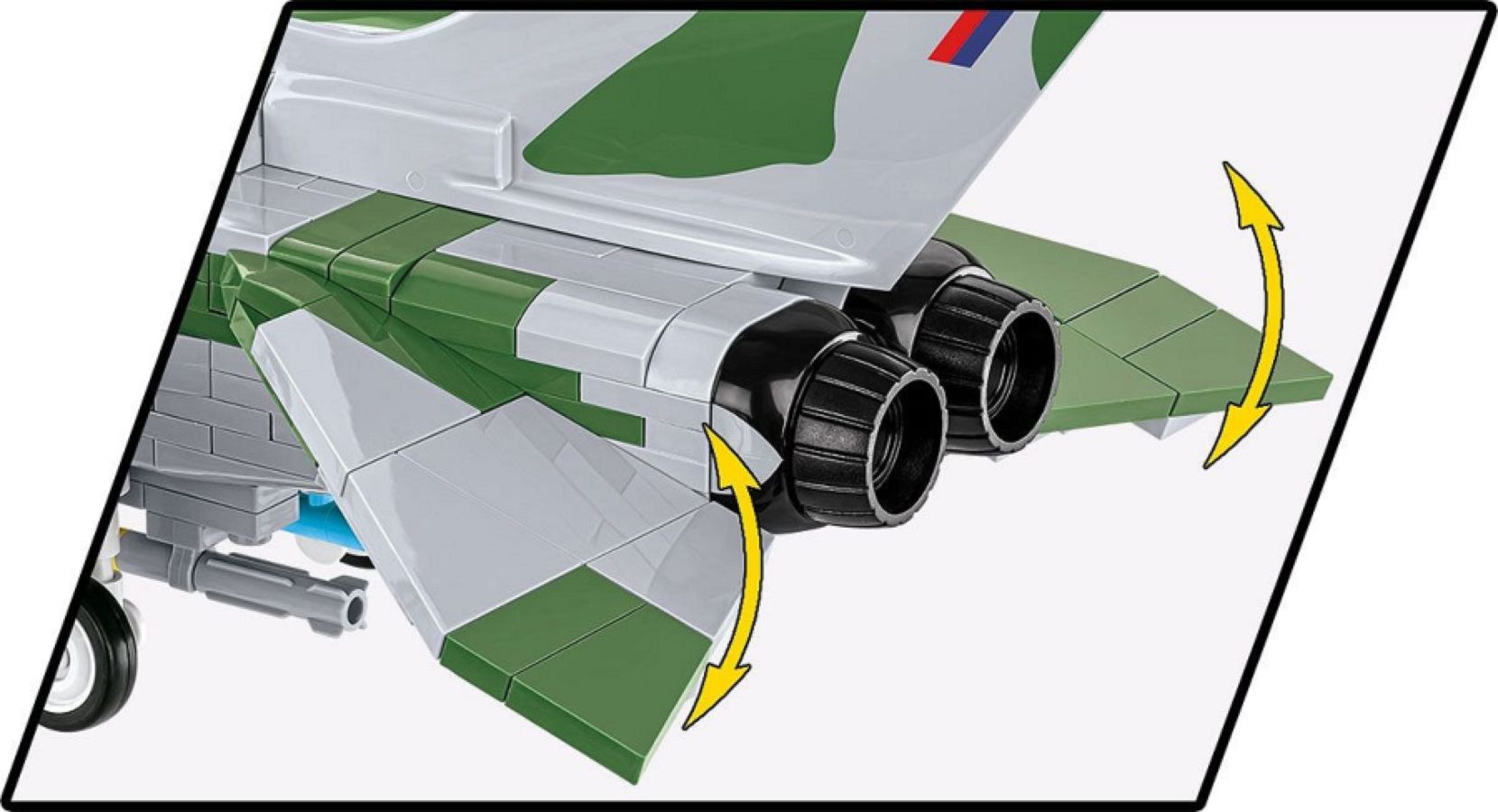 The model, just like the original, has a mechanism that allows you to change the position of the wings (variable wing geometry). It also has an opening cabin with space for two full-size figures, movable ailerons and wheels.