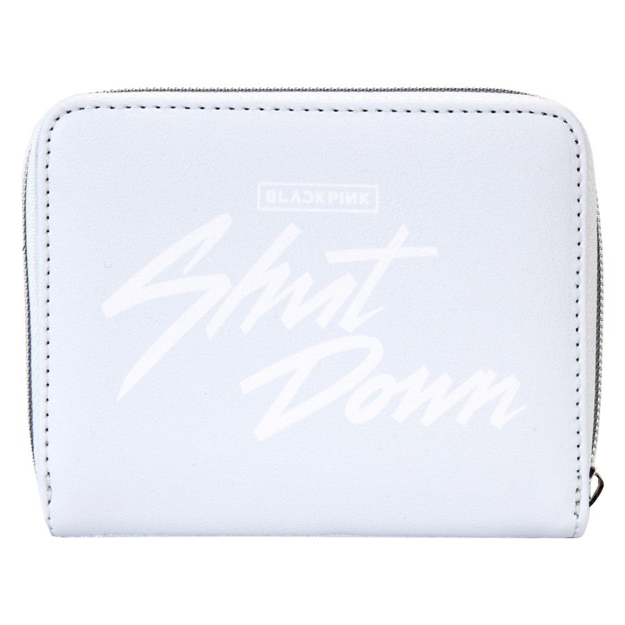 This wallet features Pop! JISOO, Pop! JENNIE, Pop! ROSÉ, and Pop! LISA as they strike poses in outfits from their hit song "Shut Down".