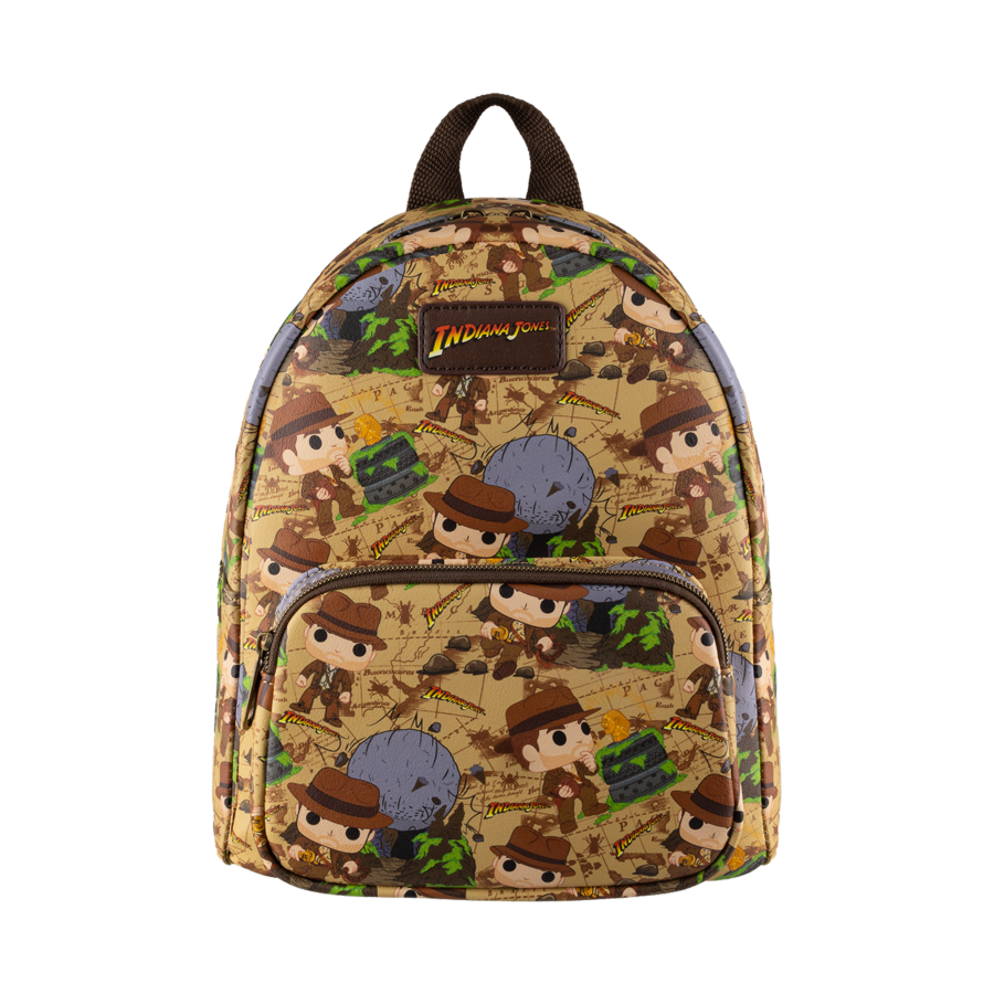 Dr. Jones is on a mission to prevent historical treasures from falling into the wrong hands. Now you can help keep your treasures safe and close at hand with the Loungefly x Funko Pop! Indiana Jones Raiders Mini Backpack. Plan out your next expedition with this fun accessory featuring Funko Pop!-styled art, scenery, and map background. This valuable relic doesnt belong in a museum - it belongs in your Indiana Jones and the Raiders of the Lost Ark collection!