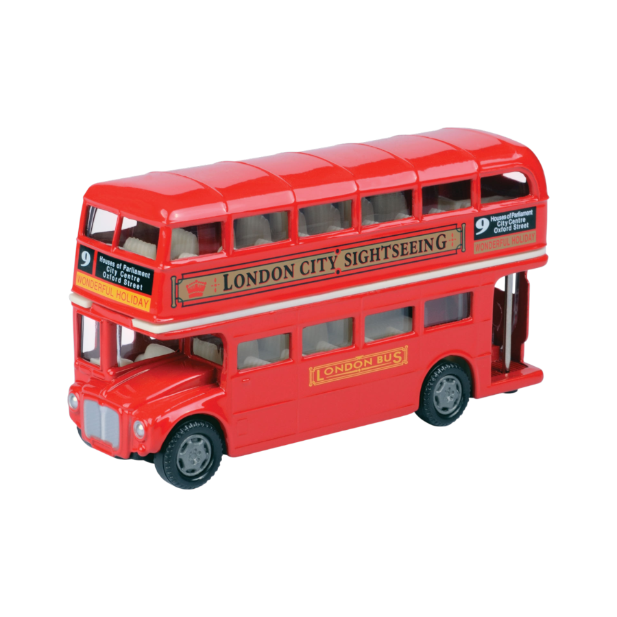 The Metro Town 4.5" London Bus Die-Cast Vehicle brings an iconic city favourite to life in a larger compact scale. Featuring detailed styling and durable die-cast construction, its perfect for play, display, or collecting.