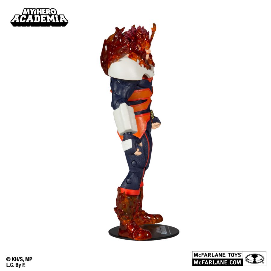 - Endeavor is featured in his Season 4 Hero Outfit with transparent flames to mimic his iconic look. Comes with a base