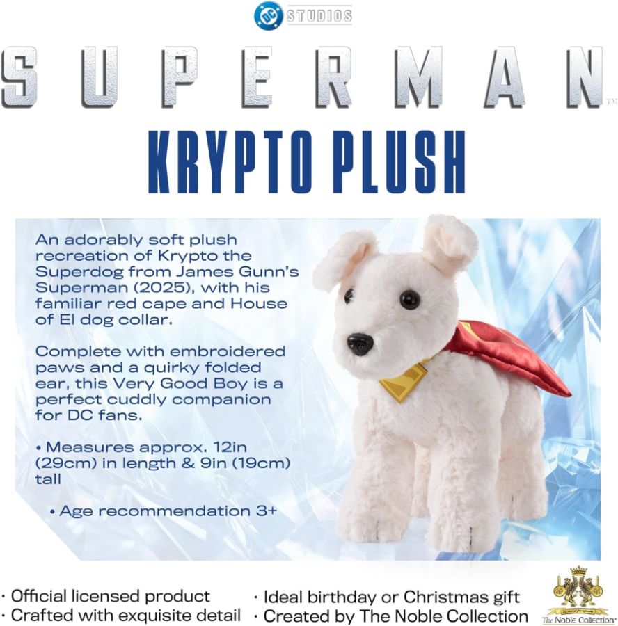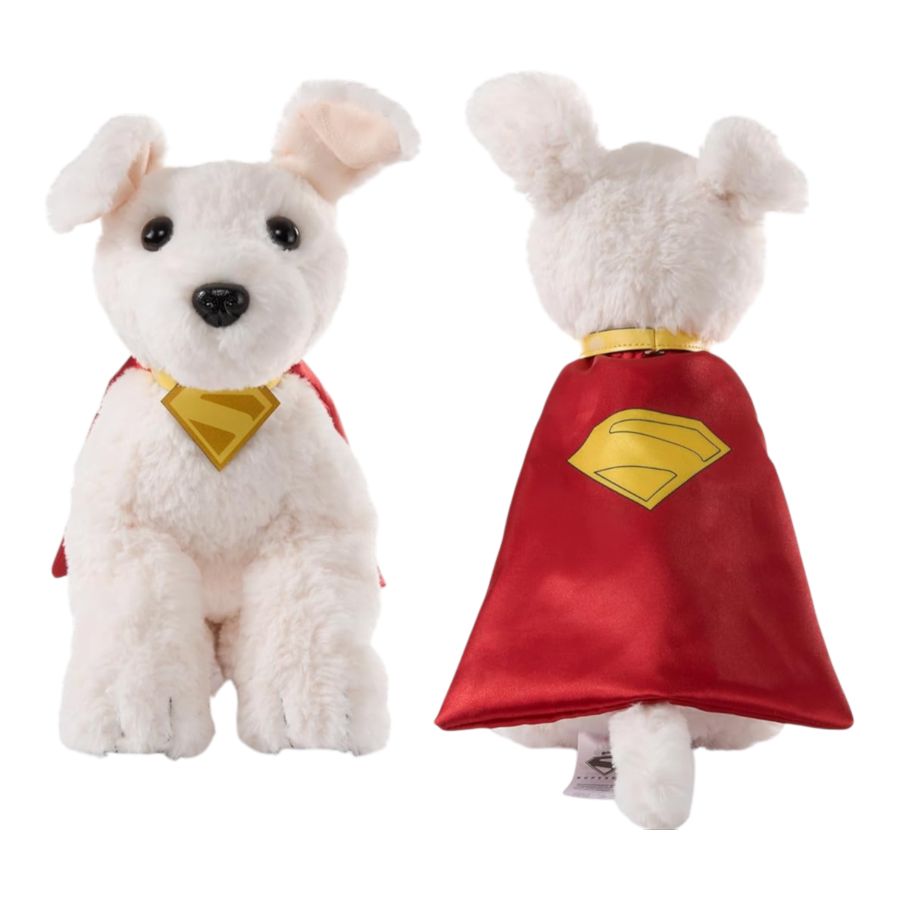 An adorably soft plush recreation of Krypto the Superdog from the new Superman (2025) film.