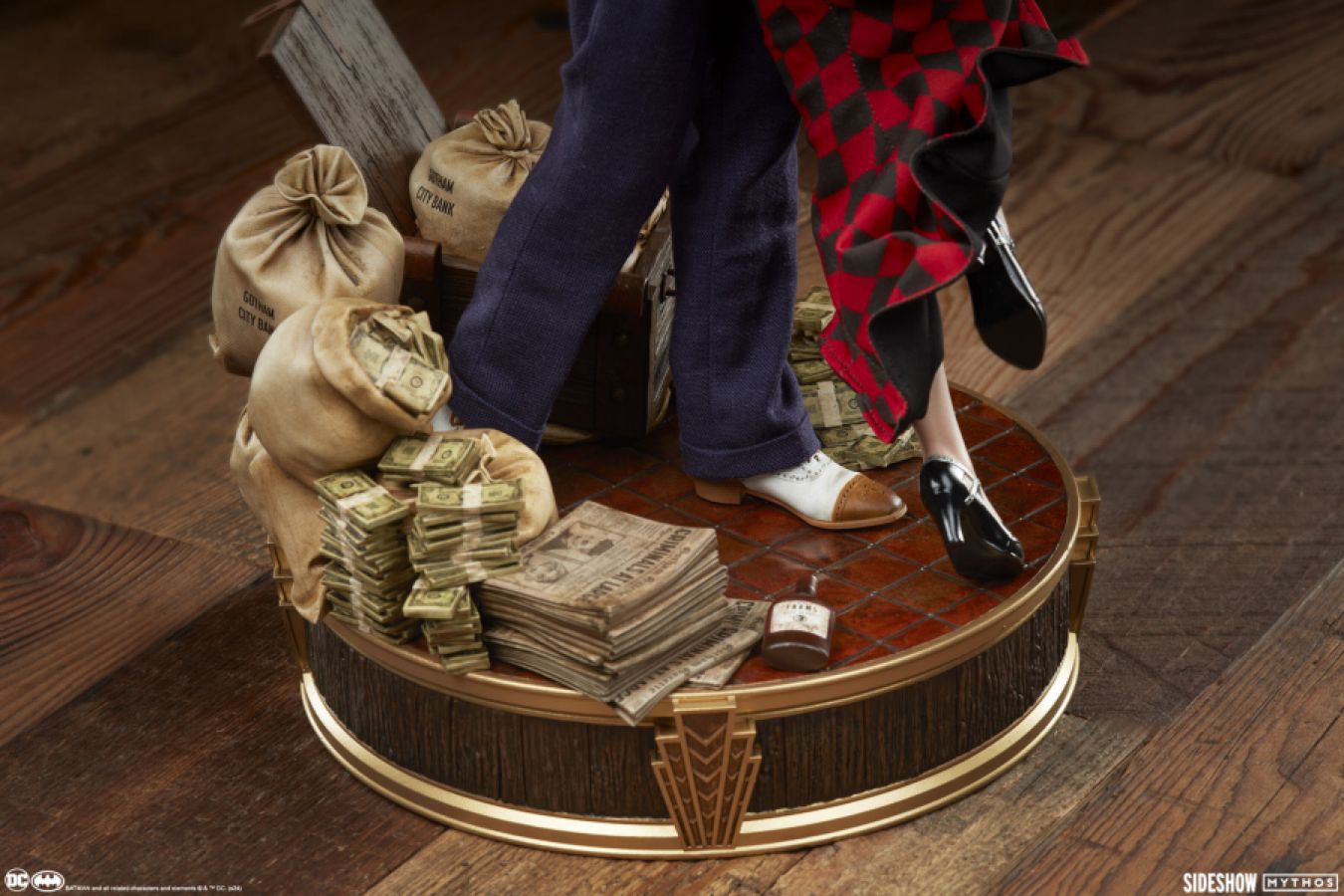 Sideshow presents The Joker and Harley Quinn: Lawless Love Diorama. This swanky DC collectible reimagines Gotham City's clown prince and princess as 1930s bandits celebrating their latest score.