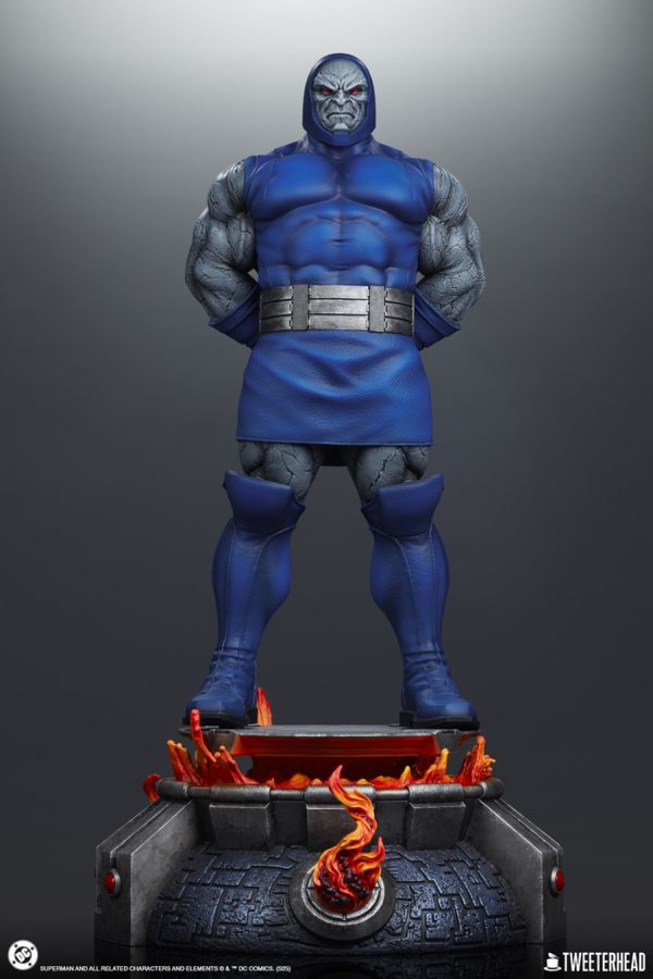 This fully sculpted Darkseid comes in a faithful interpretation of his legendary classic design, standing atop an Apokolips inspired base towering like a monument to the ultimate cosmic tyrant!