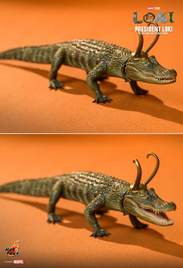 "Hello. Which one of us are you?" - President Loki How many Loki is too many Loki? In Episode 5 of Marvel Studios' Loki, fans are introduced to a new bunch or Loki variants! Perhaps the most arrogant and pompous Loki – President Loki – shows up and expecting to take over the control of the realm until his own army turns on him. Exquisitely crafted based on the screen appearance of Tom Hiddleston as President Loki in the series, the figure features a newly developed head sculpt and his horned helmet with delicate craftsmanship, election campaign pin on the suit applied with weathering effects perfectly translating the details; a pair of daggers, greatly detailed accessories such as Alligator Loki in one-sixth scale, a cane, a specially designed character backdrop with lenticular effect, and a themed figure stand. Reserve space for the President Loki figure among your glorious collection today! The 1/6th scale President Loki Collectible Figure specially features: - Authentic and detailed likeness of Tom Hiddleston as Loki in Marvel Studios ’ Loki series - Newly developed head sculpt with highly-accurate facial expression and skin texture - Black colored long hair sculpture with horned helmet pained in bronze - Approximately 31 cm tall - Body with over 30 points of articulations - Ten (10) pieces of interchangeable hands including: - One (1) pair of fists - One (1) pair of gesture hands - One (1) pair of cane holding hands - One (1) pair of dagger holding hands - One (1) pair of hands with green effects - Each piece of head sculpt is specially hand-painted Costume: - One (1) grayish green colored suit jacket with weathering effects and election pin - One (1) green colored vest - One (1) beige colored shirt - One (1) green colored patterned tie with tie clip - One (1) pair of grayish green colored pants with weathering effects - One (1) pair of socks - One (1) pair of black colored shoes Weapons: - Two (2) daggers Accessories: - One (1) 1/6th scale Alligator Loki collectible (head is equipped with articulated function) - One (1) walking cane - One (1) specially designed character backdrop - A themed figure stand with character name plate View all
