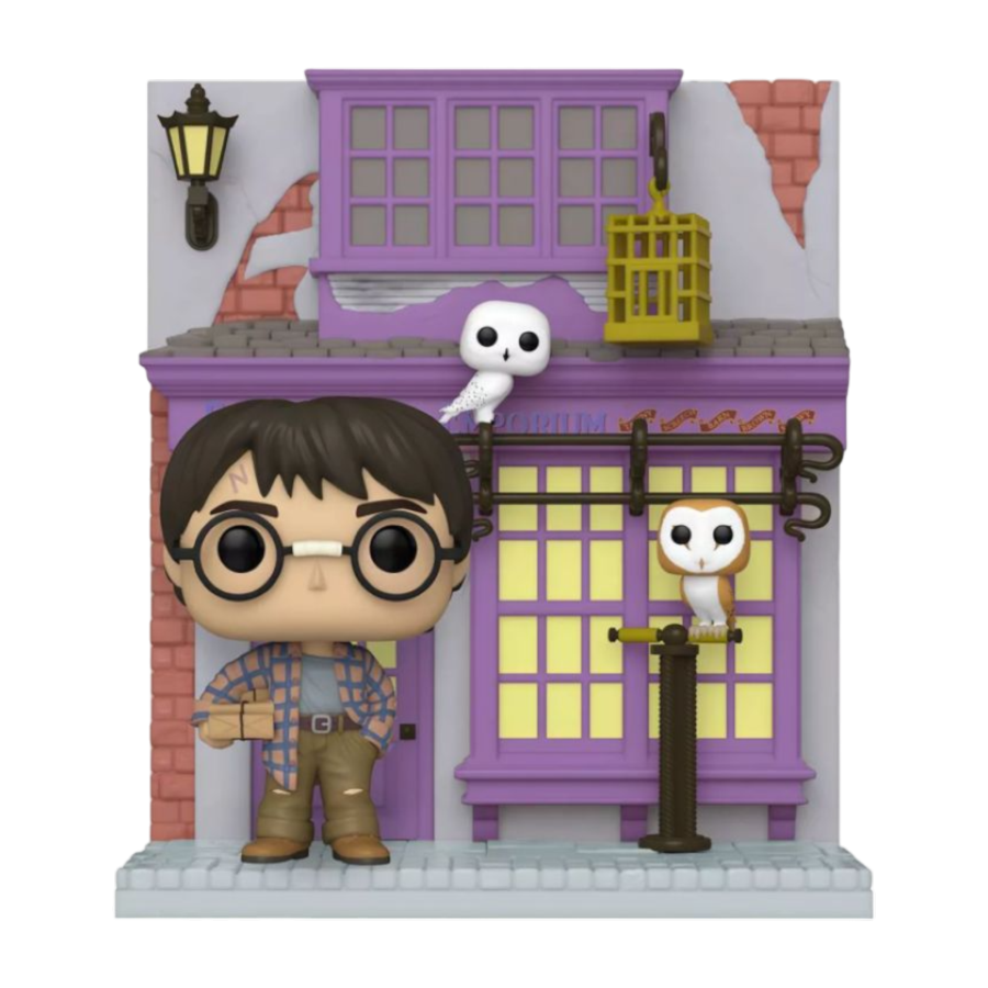 US Exclusive: RESTRICTED SHIPPING - this item cannot be shipped to USA and Canada. Harry Potter outside Eeylops Owl Emprium in Diagon Alley From Harry Potter and the Philosopher's Stone As portrayed by Daniel Radcliffe Made of plastic/vinyl Harry approximately 3.75" tall Window box packaging Pop!Deluse #140 View all