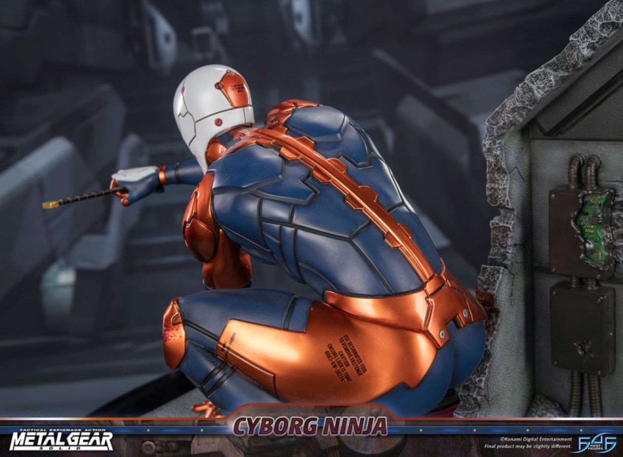 The statue is inspired by the intense boss battle where Cyborg Ninja and Solid Snake face off against Liquid Snake, who is piloting the Metal Gear REX. It depicts Cyborg Ninja in a dynamic, ninja-like pose, wielding his high-frequency blade in his right hand. The statue