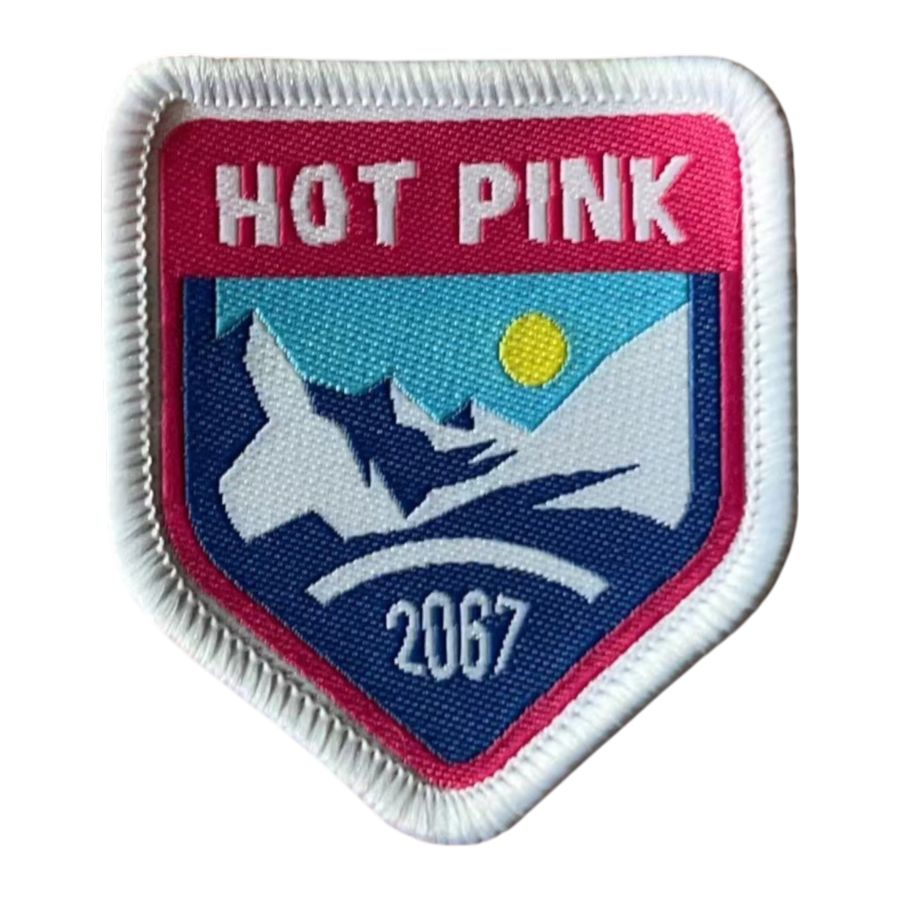 Collectible accessories: Hot Pink Snowtrack Hot Rodder Magazine postcard and commemorative fabric mini patch