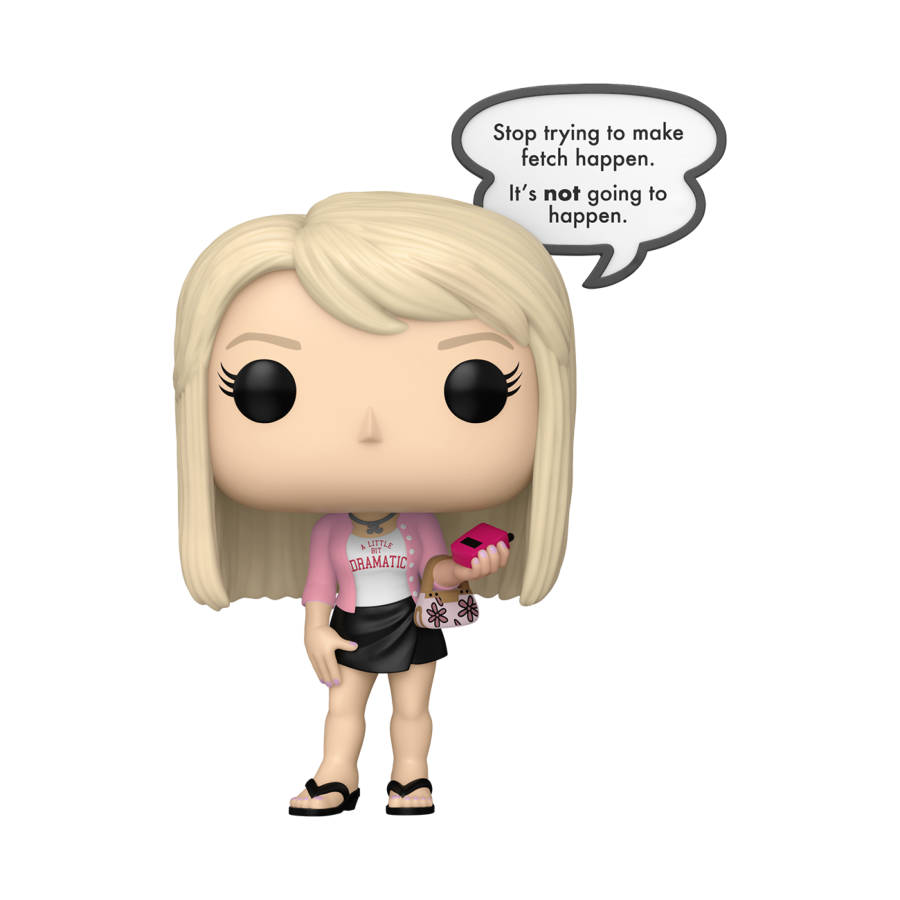 This POP! Sayings collectible features a speech bubble that reads, "Stop trying to make fetch happen. It's not going to happen."