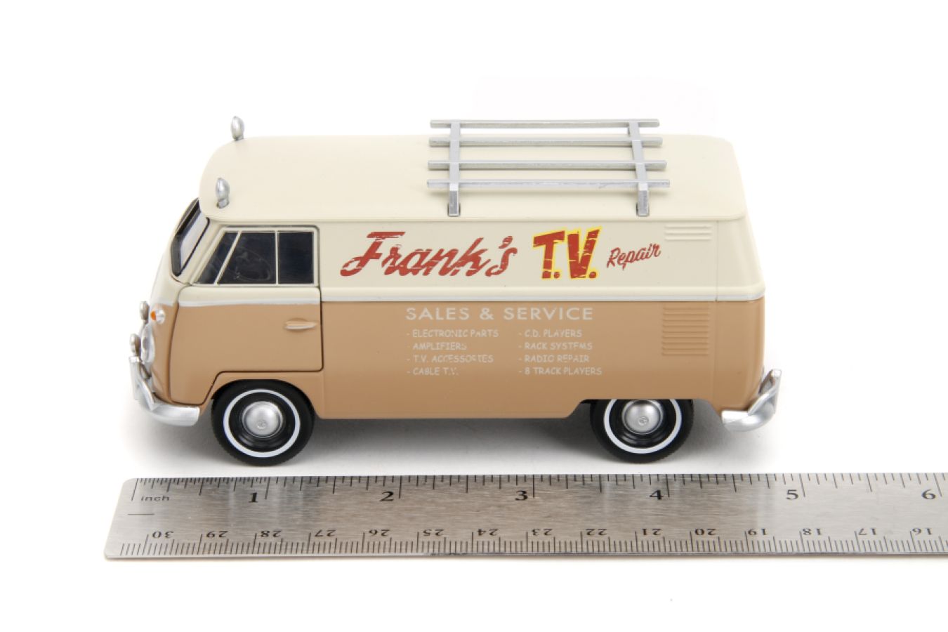 This iconic Volkswagen Bus is the perfect addition to any fan or collector's collection. Made with die-cast metal, this replica boasts an accurate body design and intricate details such as working wheels and opening doors.