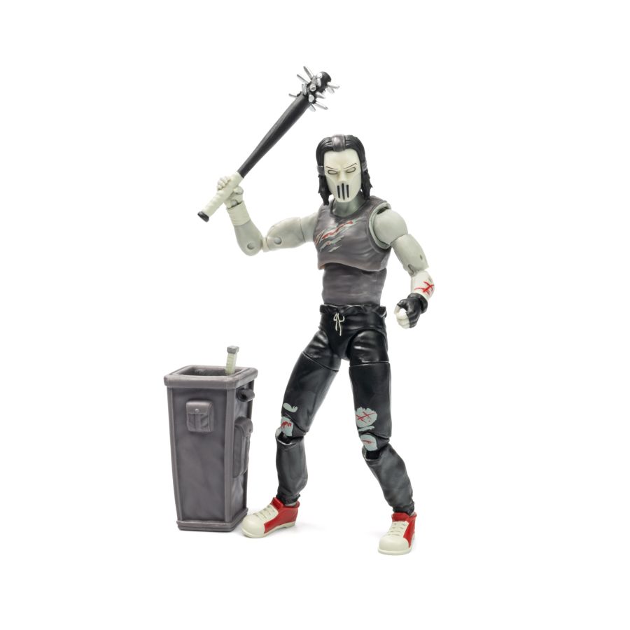 Unleash your inner vigilante with this Urban Legend version of Casey Jones! Based on one of the darker series of the TMNT comics, this 5-inch figure brings a grittier, older Arnold "Casey" Jones to life. From the ripped sweatpants to the ripped biceps, you'll get a realistic feel from this figure. Even his weapons have seen better days, with the telltale signs of wrapped tape repairs done with incredible paint detail. Get ready for a first - Casey's iconic Urban Legend American flag mask is here, this version of Casey has never been done as an action figure before. This angular mask features sleek metal bar detailing across the mouth and a menacing eye design. This Exclusive Casey comes in a wicked grey scale paint treatment with select pops of color. Don't miss out on this unique addition to your TMNT collection!