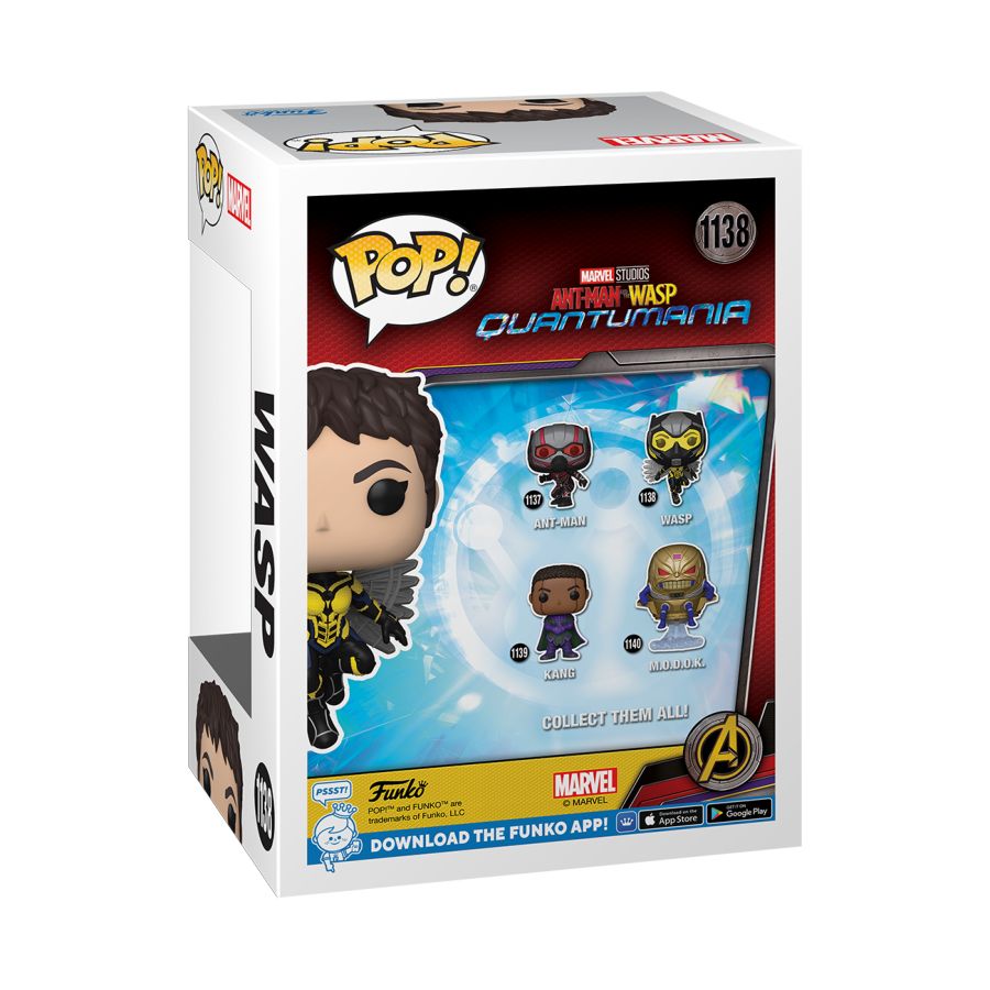 Explore the Quantum Realm with Pop! Wasp from Marvel Studios' Ant-Man and The Wasp: Quantumania. Anticipate a universe of adventures as Pop! Wasp helps protect against evil, face difficult odds, and push beyond what was previously believed possible. There's a 1 in 6 chance you may find the chase of Pop! Wasp without her helmet. Collect them all. Vinyl bobblehead is approximately 4.32-inches tall.