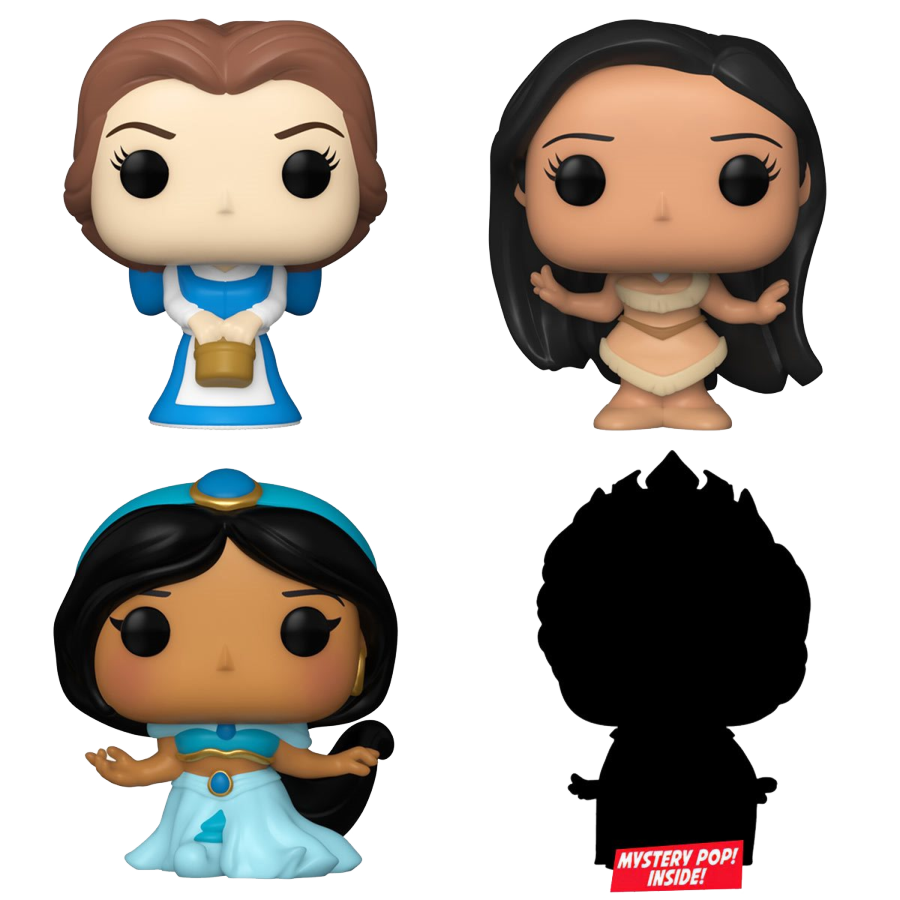 This 4-pack includes Bitty Pop! Peasant Belle, Bitty Pop! Pocahontas, Bitty Pop! Jasmine, and a mystery Bitty Pop! figure.
